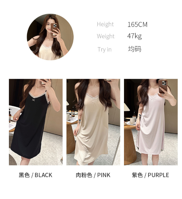 Women's Nightwear Sexy Lace Spaghetti Strap Nightdress Seamless Padded Sleepwear Summer Cooling Silk Dress