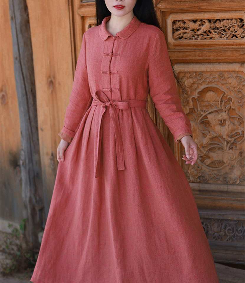 Nom du produit:Robe tunique Robe mi-longue en lin