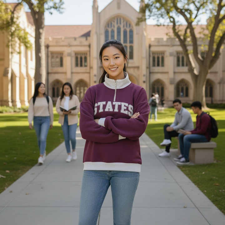 Women's Oversized Printed School Zipper Mockneck Vintage Drop Shoulder Long Sleeved Casual Sorority Fraternity Winter Sweatshirt