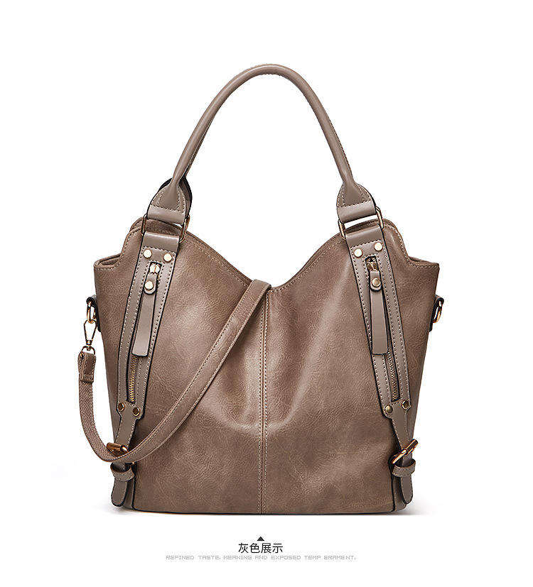 Women's PU leather handbag, large capacity handbag, women's polyester fiber shoulder bag, fashionable handbag