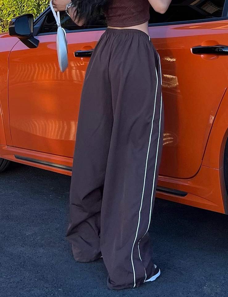 Women's Parachute Pants Baggy Elastic Waist Relaxed Y2K Track Pant Trousers 100% Polyester Drawstring hemline pants