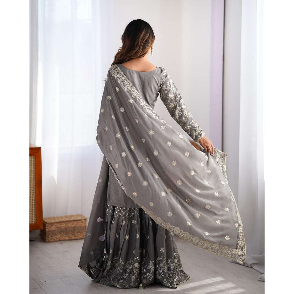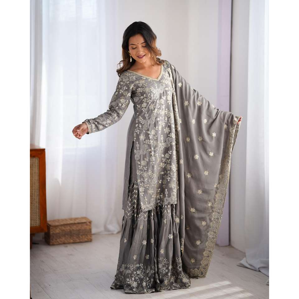 Women's Party Wear Fancy Top Sharara Set with Dupatta Including Top Bottom and Covering Cloth