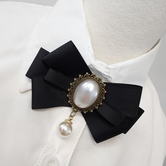 Women's Pearl Cubic Badge Tie Brooch South Point Inspired Clothes Pin for Blouses Fashionable Accessories