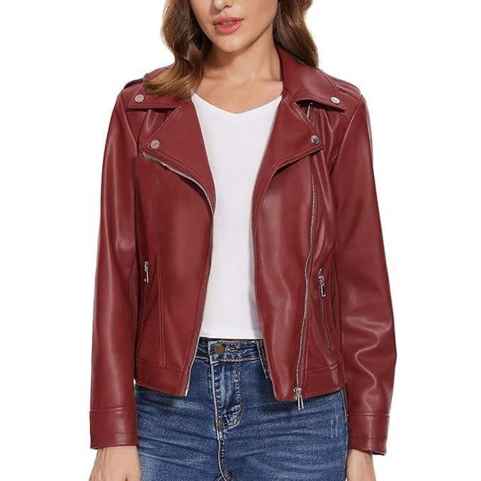 Blouson en cuir grande taille pour femme - Coupe ajustée printemps-automne avec col montant et fermeture éclair, respirant, style motard