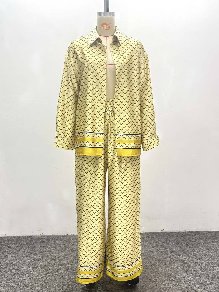 Ensemble 2 pièces mode pour femme grande taille : chemise ample imprimée à couleurs contrastées et pantalon décontracté à jambes larges, style africain