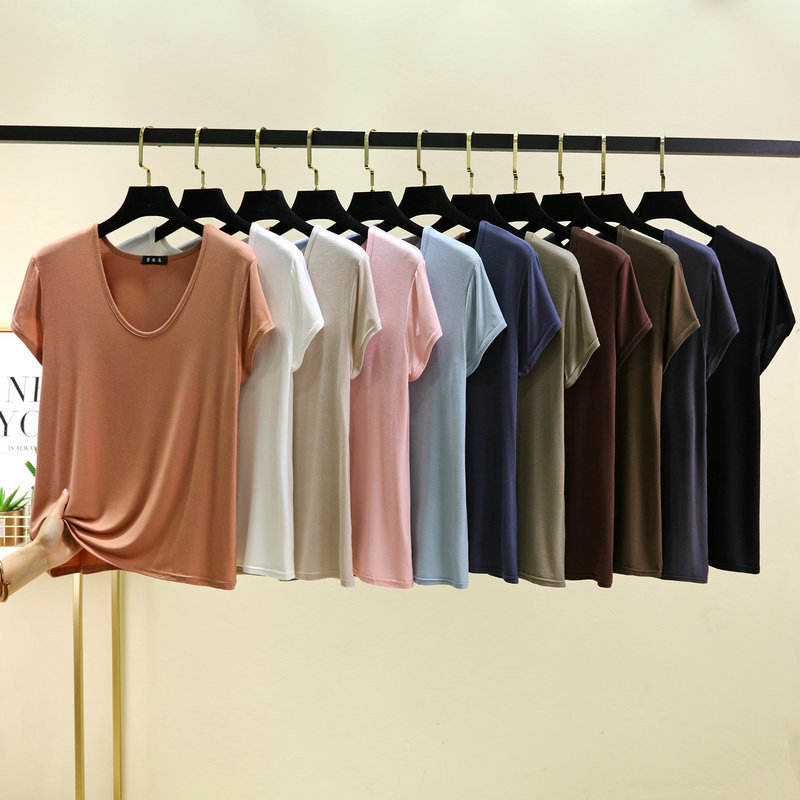 T-shirt à manches courtes en modal à col rond pour femme, taille plus - Haut léger et ample, tendance