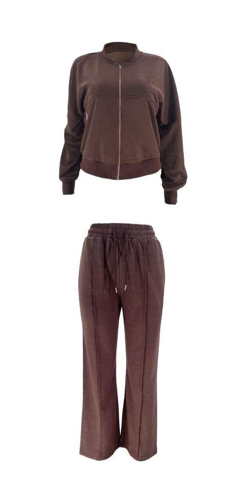 Ensemble de survêtement d'hiver pour femmes grande taille, couleur unie, sweat-shirt 100% coton avec pantalon de jogging deux pièces