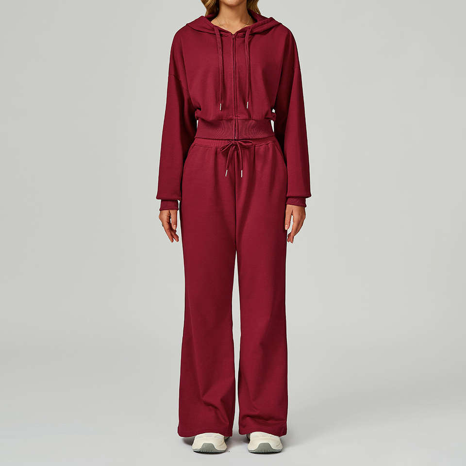 Ensemble de survêtement d'hiver pour femmes grande taille, couleur unie, sweat-shirt 100% coton avec pantalon de jogging deux pièces