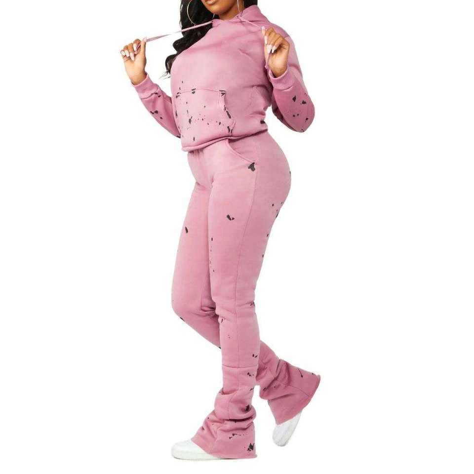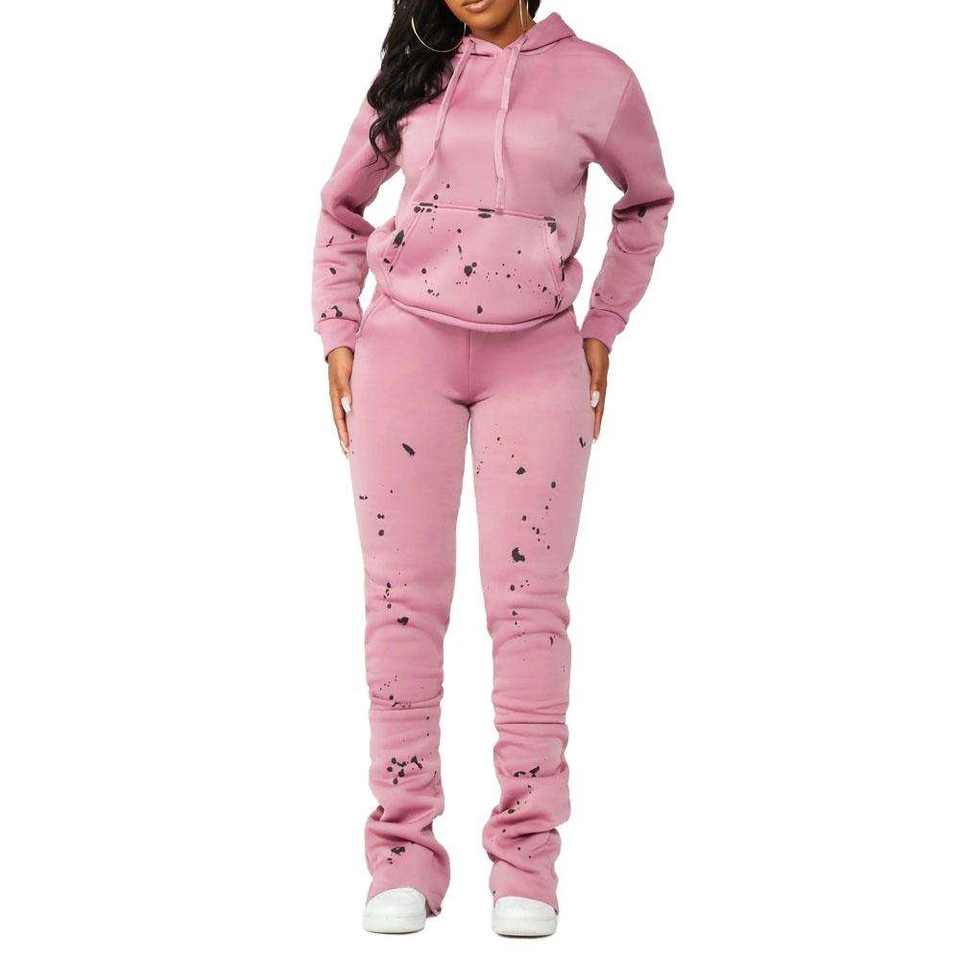 Ensemble de survêtement d'hiver pour femmes grande taille, couleur unie, sweat-shirt 100% coton avec pantalon de jogging deux pièces