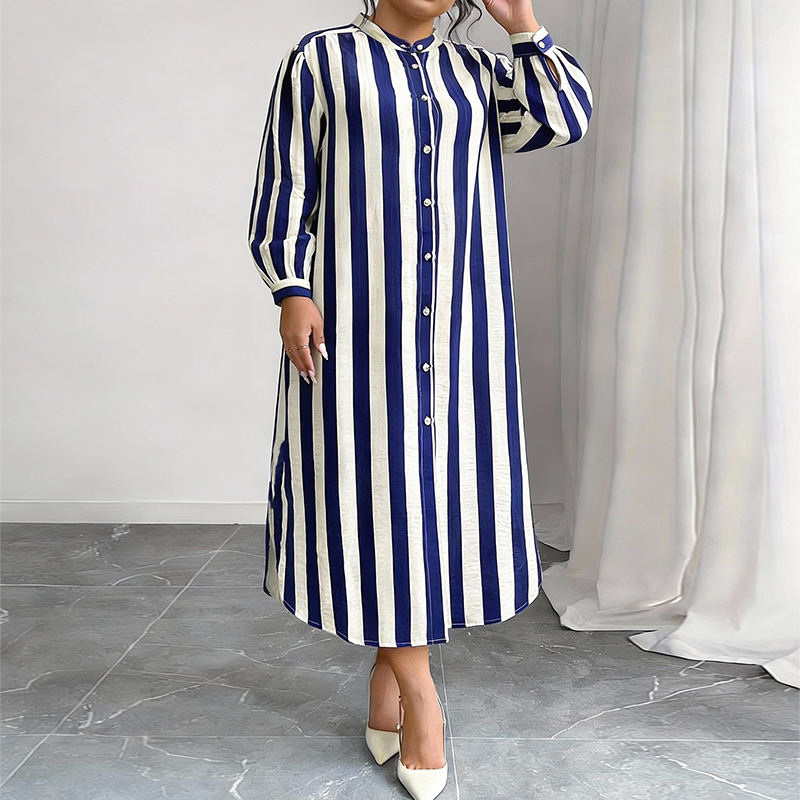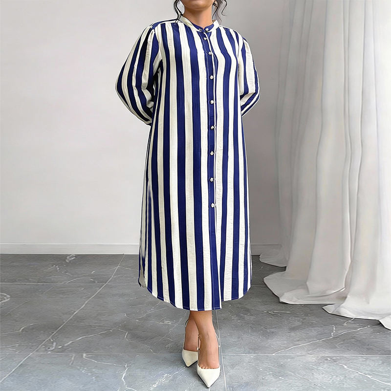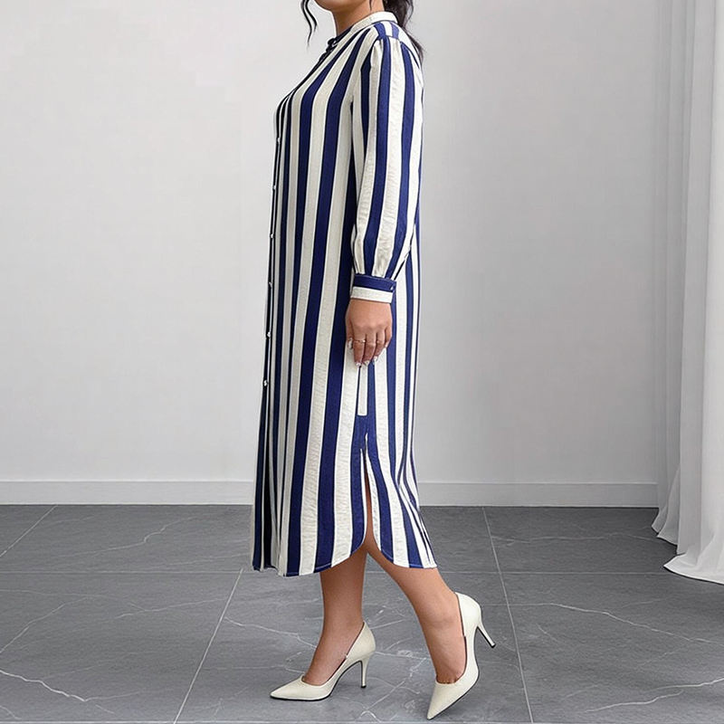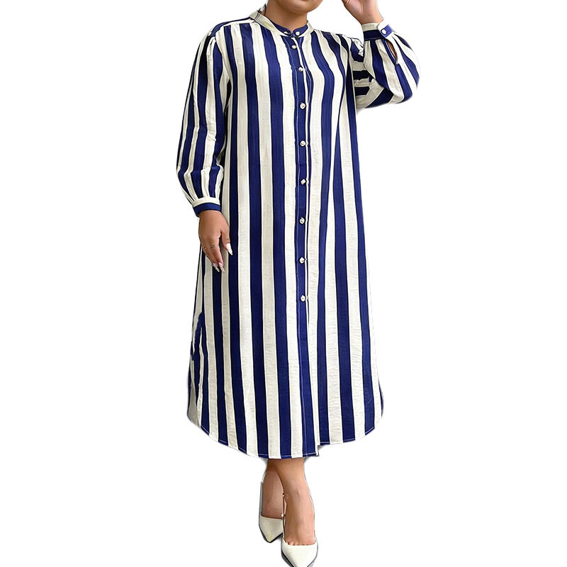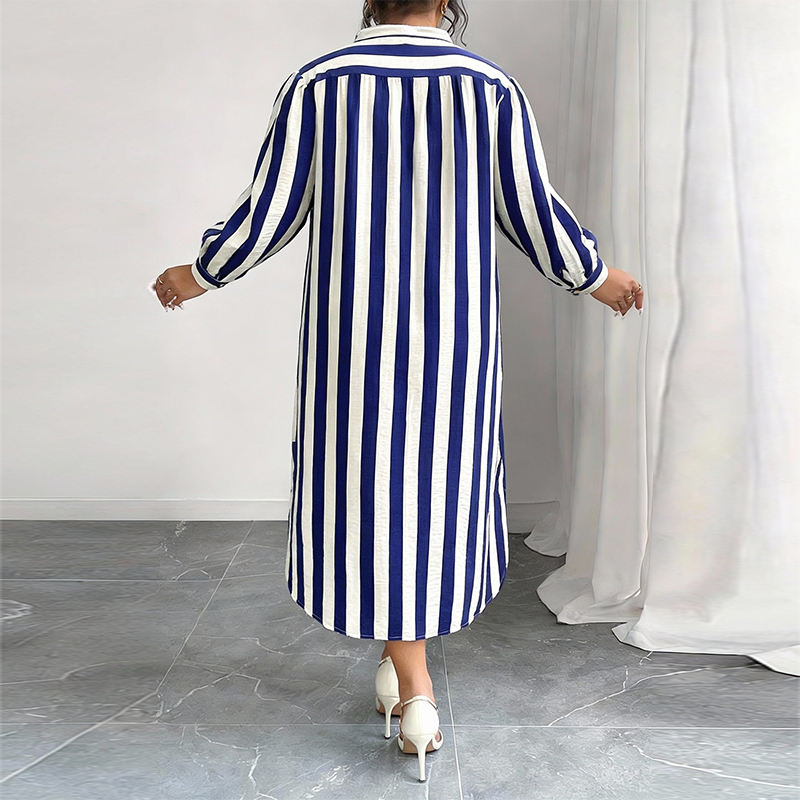 Robe chemise à rayures pour femmes grande taille, à manches longues, à simple boutonnage, coupe droite, jupe décontractée pour femme, grande taille 1XL-5XL