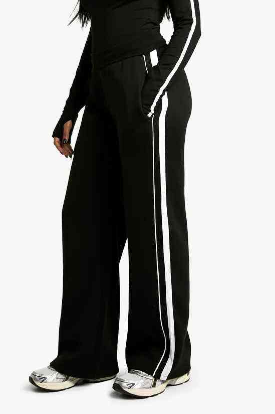 Women's Polyester/Cotton Black Winter Lace Straight Leg Joggers Terry Fleece Sweatpants High Waist Soft Trouser