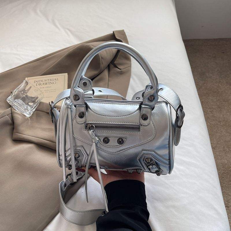 Sac à main à bandoulière unique pour femme en matériau PU doublé de coton, imperméable, avec décoration de rivets