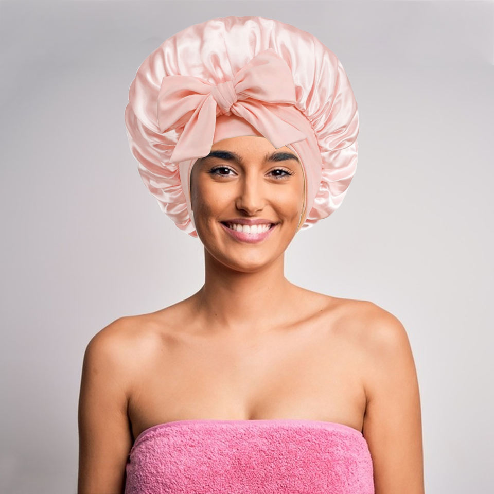 Chapeau rond en Satin de ruban élastique de couleur pure pour femmes cheveux longs pour bonnet de nuit avec Perm de beauté pour maquillage de scène décontracté
