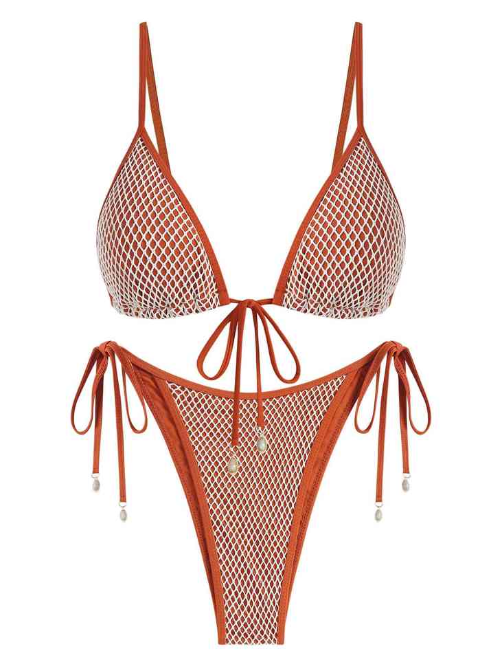 Maillot de bain bikini deux pièces pour femme, séchage rapide, style triangle, tanga, résille, avec dentelle à nouer, taille adulte, pour la plage et la piscine
