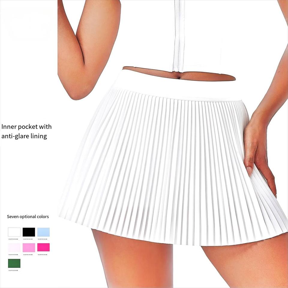 Jupe courte de tennis et de golf pour femme à séchage rapide et résistante à la lumière avec logo plissé sur le devant