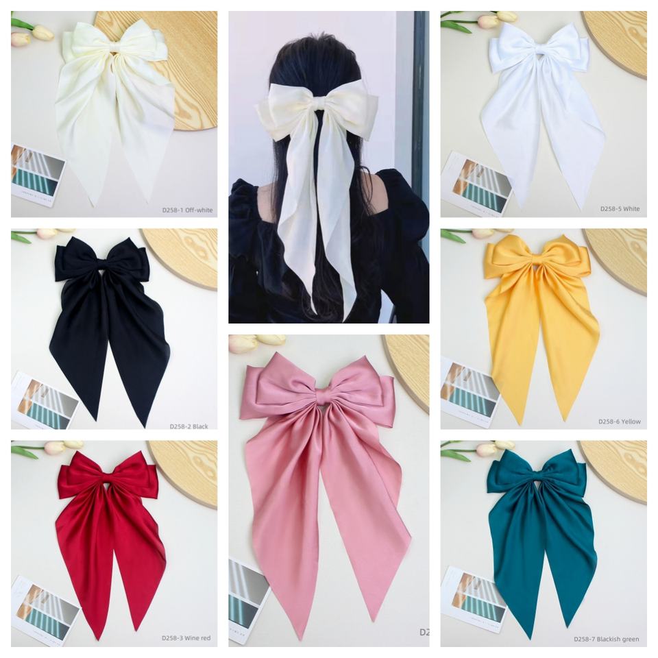 Pinces à Cheveux Papillon avec Grand Nœud en Ruban de Soie, Barrettes Longue Traîne pour Coiffure Rapide