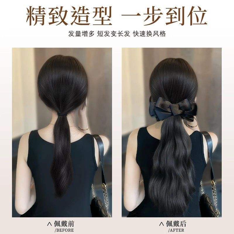 Queue de cheval bouclée réaliste pour femme avec pince à cheveux en forme de nœud, style coréen, tresse volumineuse naturelle