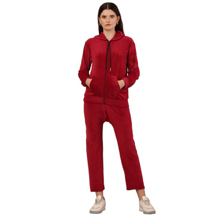 Women's Casual Winter Track Suit Solid Fleece Velvet Embroidered Zipper Button Decor Machine Washable Bow Collar for Girls Women