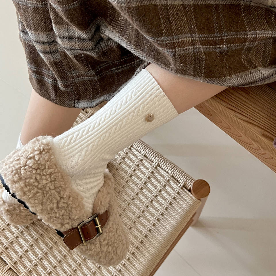 Chaussettes en laine mi-longues tressées tridimensionnelles rétro pour femmes automne hiver chaussettes épaisses chaudes pour la maison manchette de corps personnalisable quotidien