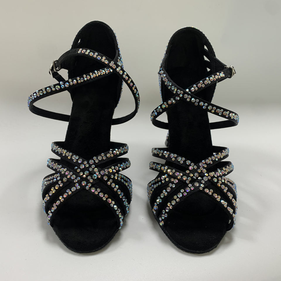 Chaussures de danse latine pour femmes avec strass, talon de 9 cm, semelle souple, sandales de danse de salon, salsa, confortables pour les fêtes et les mariages