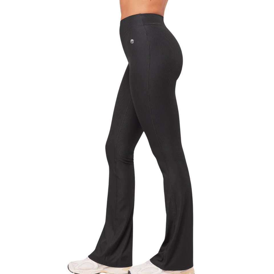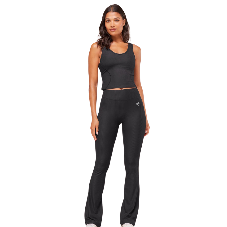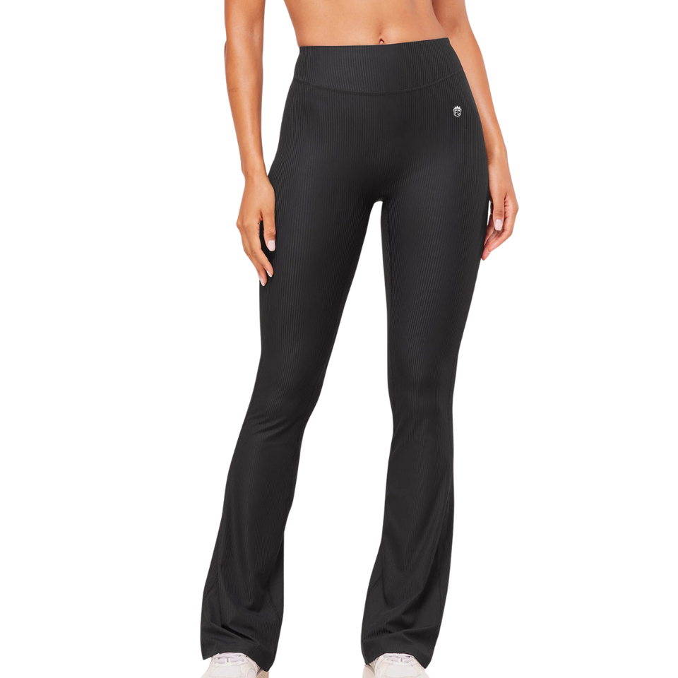 Pantalon de yoga côtelé sans couture pour femme, coupe évasée, taille haute, noir, pour la gym, le fitness, l'entraînement et les tenues décontractées confortables