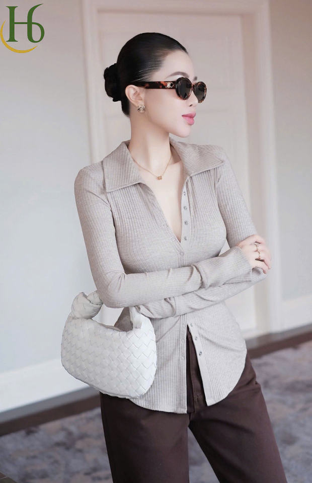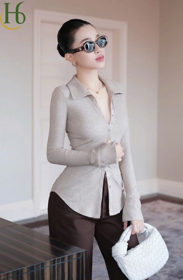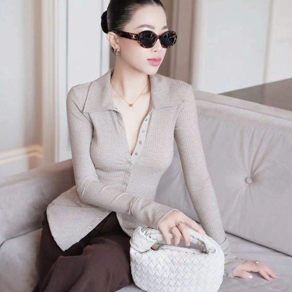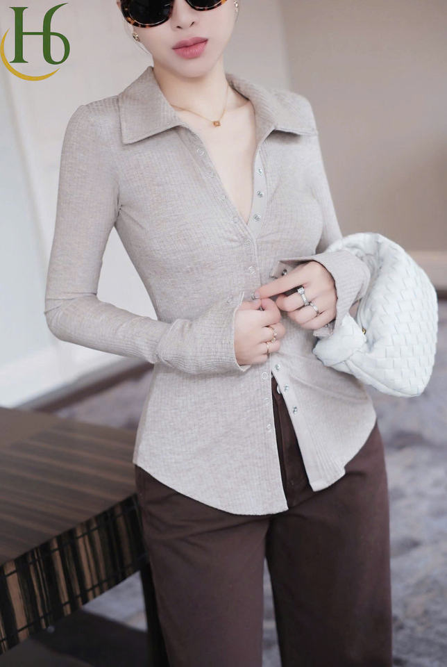 Col rabattu côtelé pour femme, fabriqué au Vietnam avec des techniques de tricot, service OEM, style décontracté, haute qualité