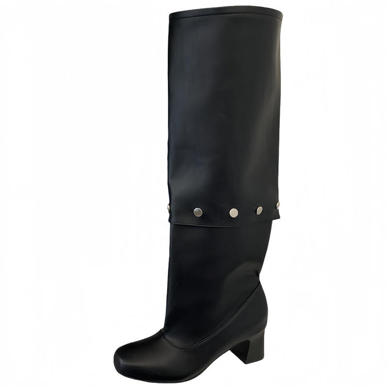 Bottes hautes pour femme à talon épais et rivets, détachables et 2-en-1, pour l'hiver, à bout rond et talon haut, style pantalon-tube