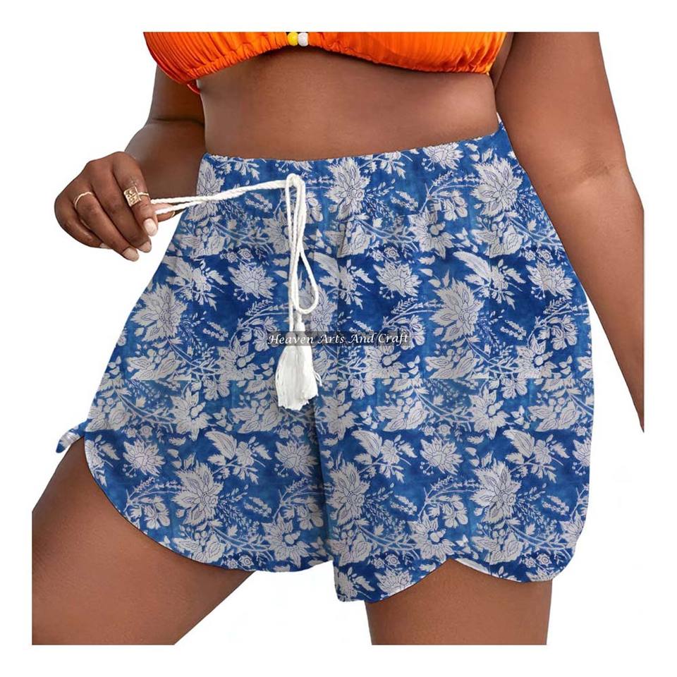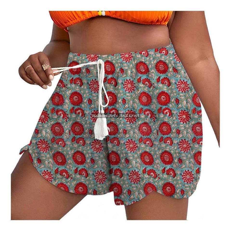 Nom du produit:Shorts à cordon de serrage en corde, imprimés à la main au bloc, 100 % coton