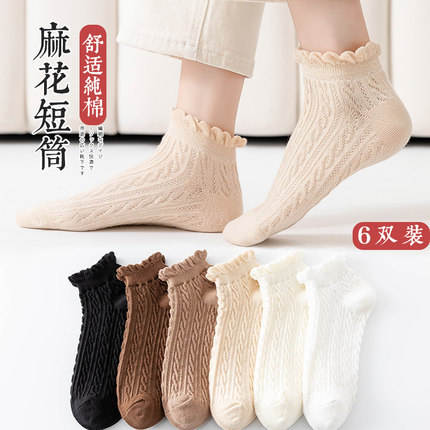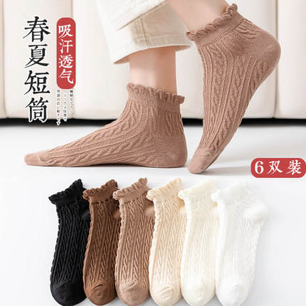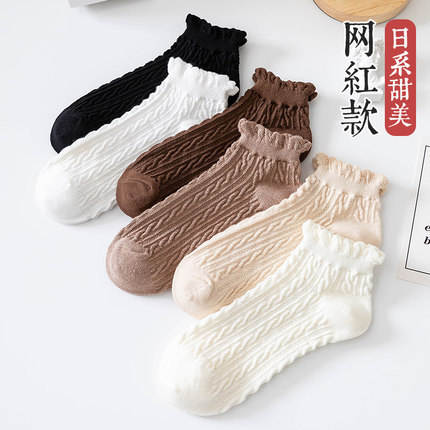 Women's Ruffled Ankle Socks Spring Summer Breathable Polyester Cotton Short Socks Japanese Style Trendy Casual Wear