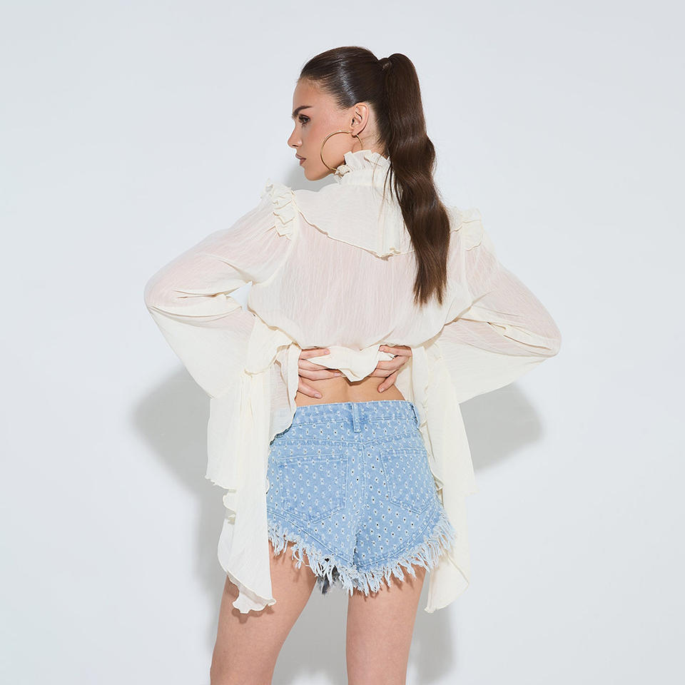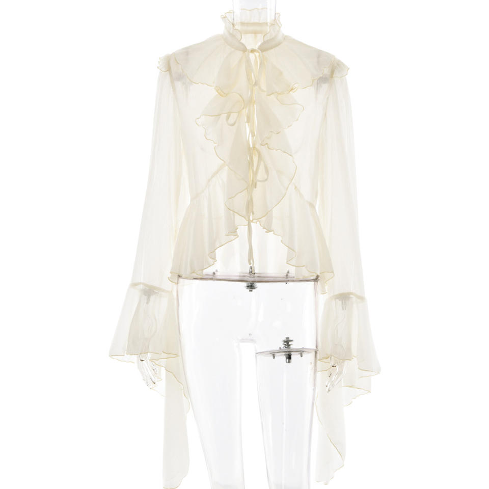 Women's Ruffled Chiffon Top Long Sleeve Solid Color Soft Blouse Shirt