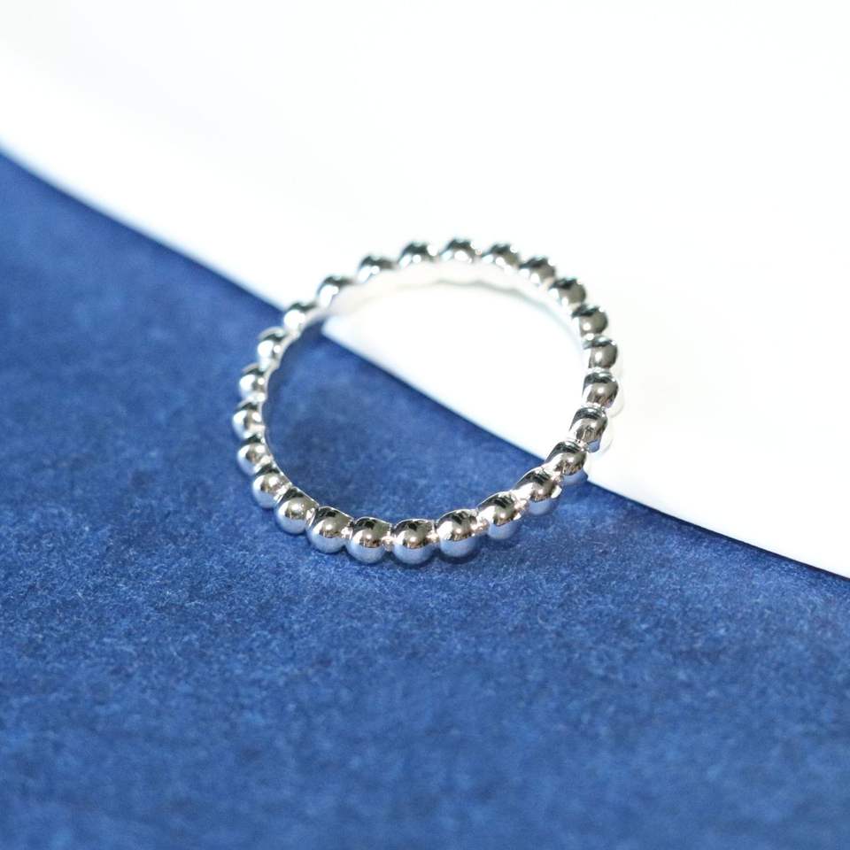Women's S925 Pure Silver Circle Bead Ring Trendy Inlay Setting for Layering Versatile Small Round Bean Ring