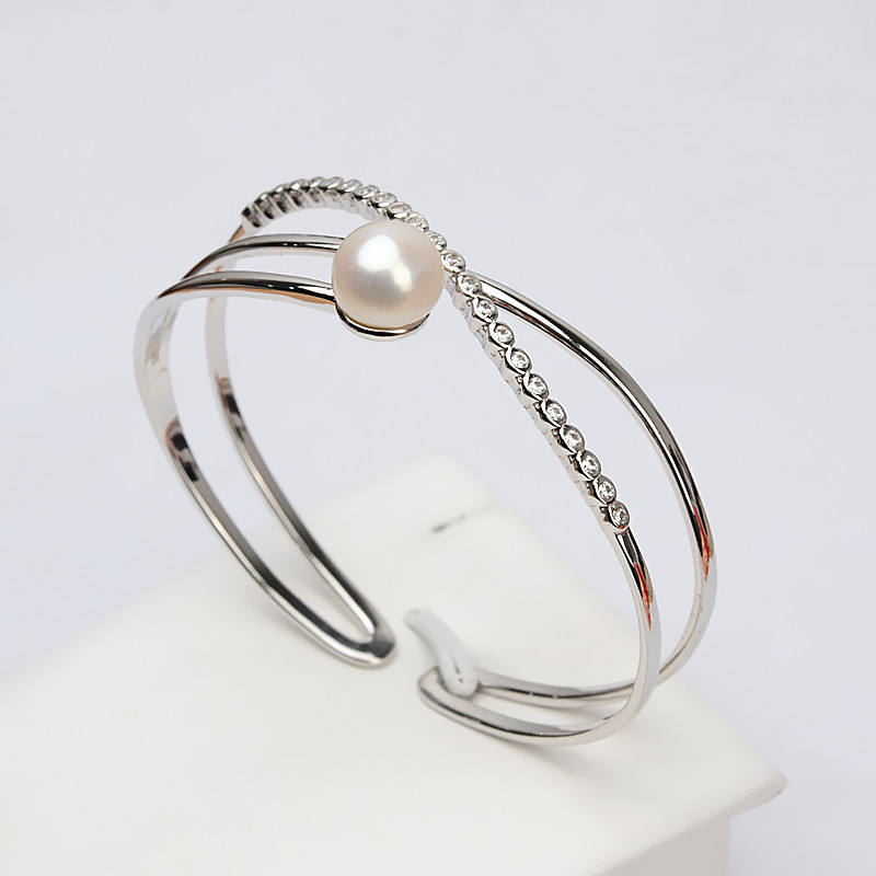 Women's S925 Silver Bracelet 9-11 Pearl Fancy Solid Handpiece DIY Jewelry Accessories Tray Semi Crystal Bracelets Bangles