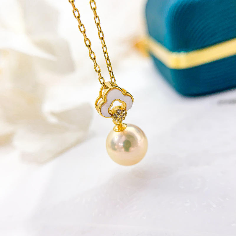 Women's S925 Silver Pendant Necklace with 8-12mm Round Beads DIY Pearl Accessories Empty Cloud Flower Pattern Cushion Cut 30621