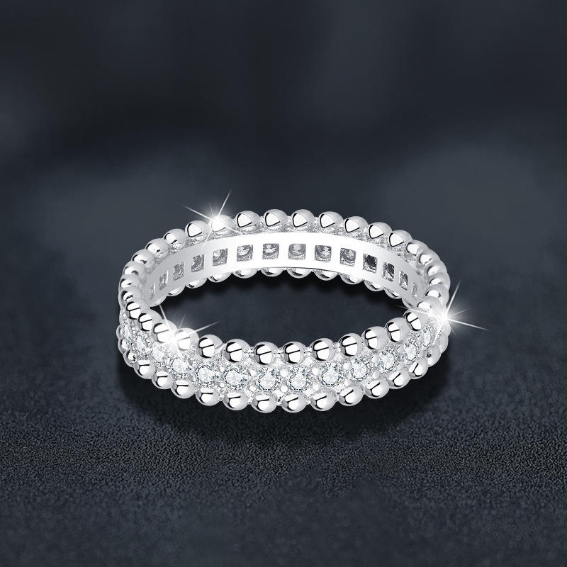 Women's S925 Sterling Silver Bead Edge Full Diamond Moissanite Ring Starry Kaleidoscope Ring Cross-Border Hot-Selling Jewelry