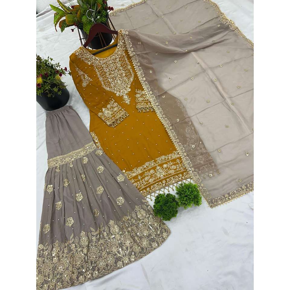 Women's Sets with Top-Bottom and Dupatta Heavy Embroidery and Dori-Sequence Work Elegant Coding Red Size S Shree Hari Fashion