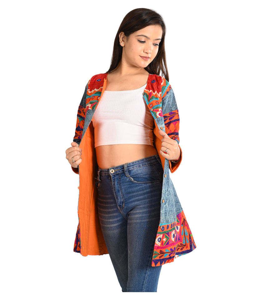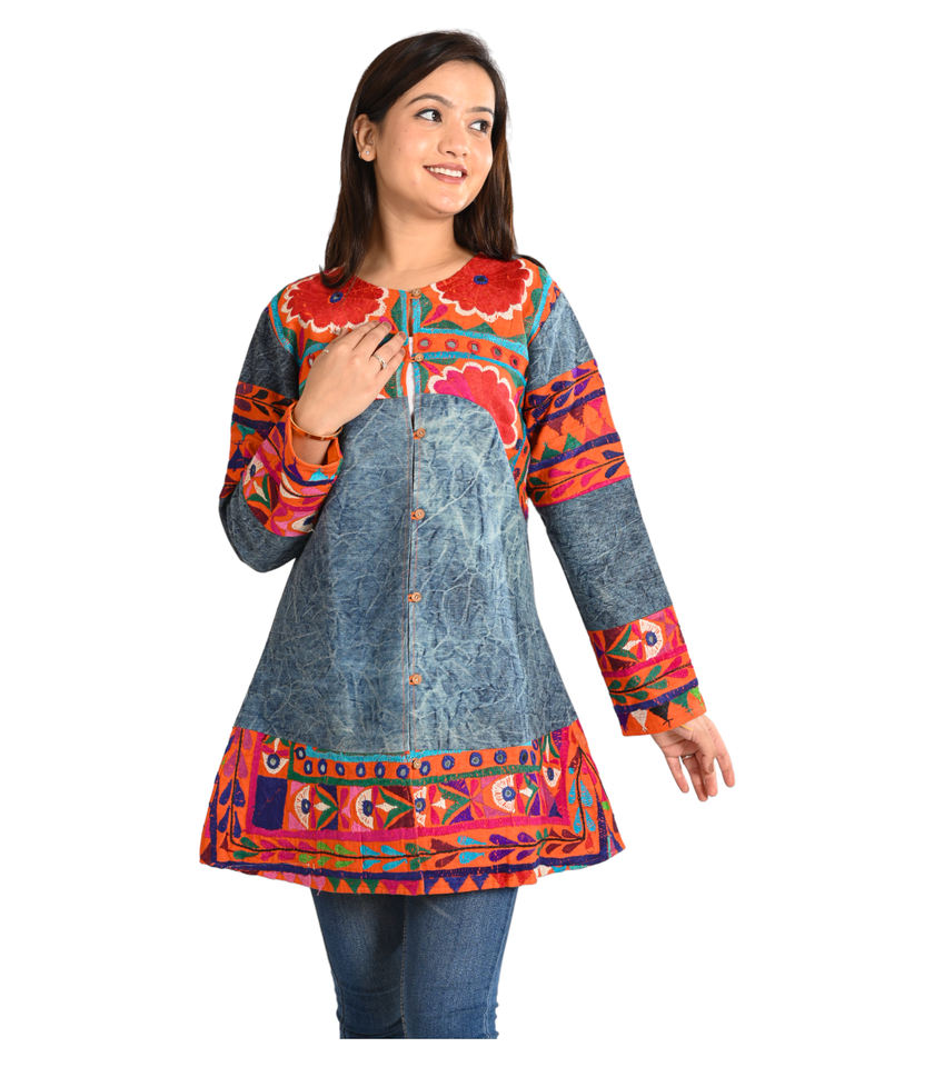 Veste d'hiver à broderie de fleurs à la main pour femmes vêtements pour femmes veste multicolore de Style indien manteau matelassé en coton