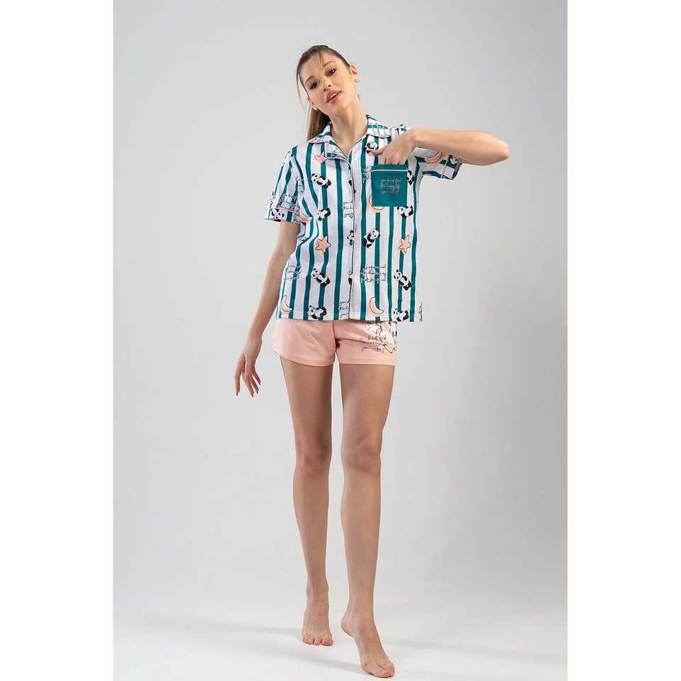 Women's Short Sleeve Shirt with Full Buttoned Oval Skirt Suit