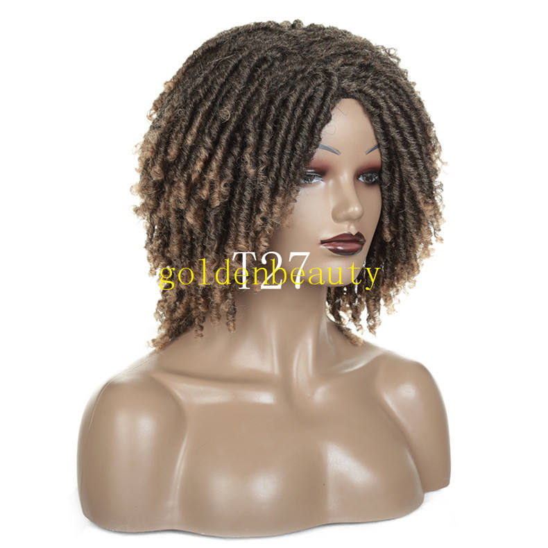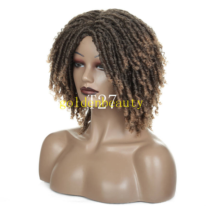 Perruques courtes pour tresses de couleur ombrée pour femmes avec accessoire de cheveux polyvalent sans dentelle sur le devant