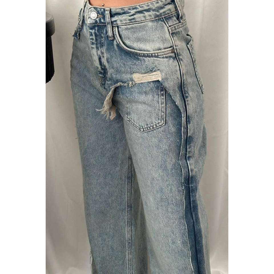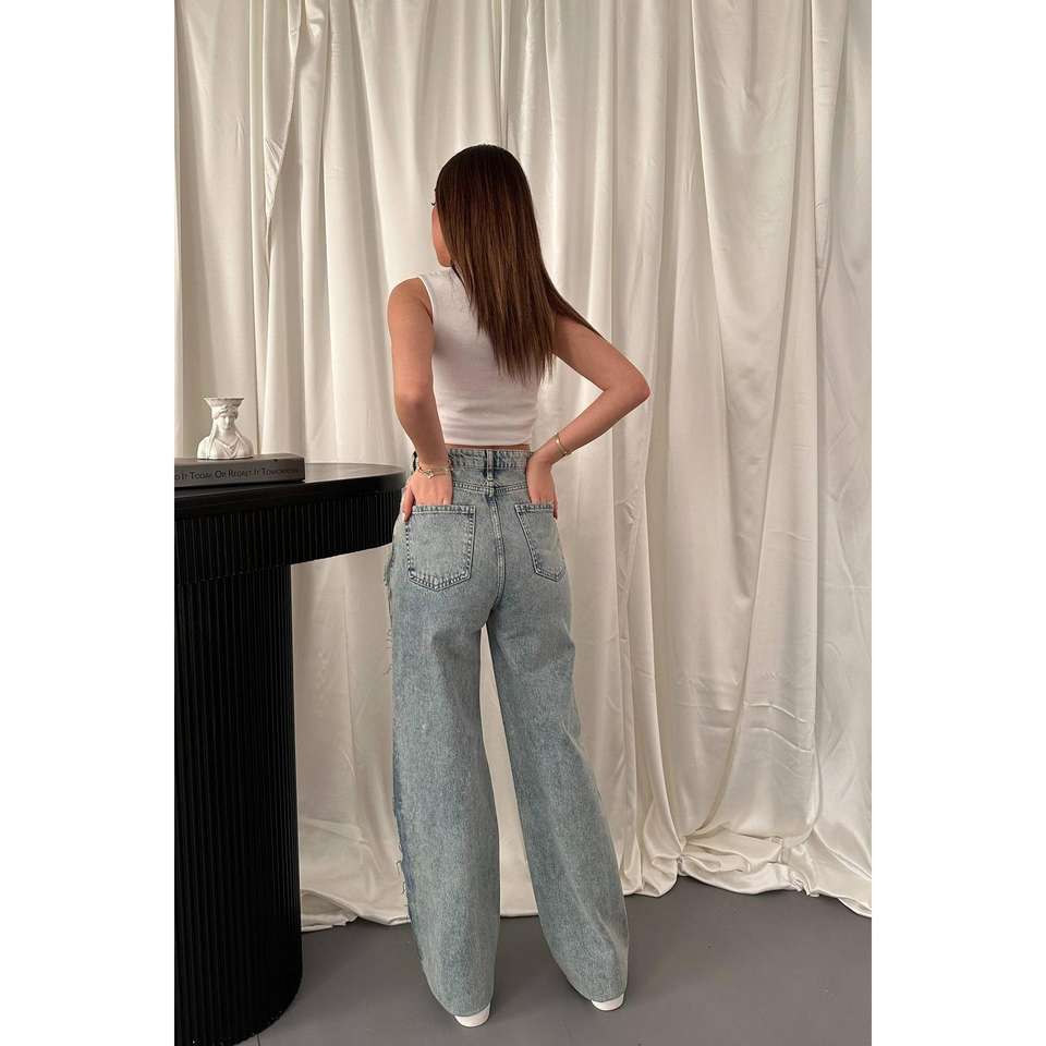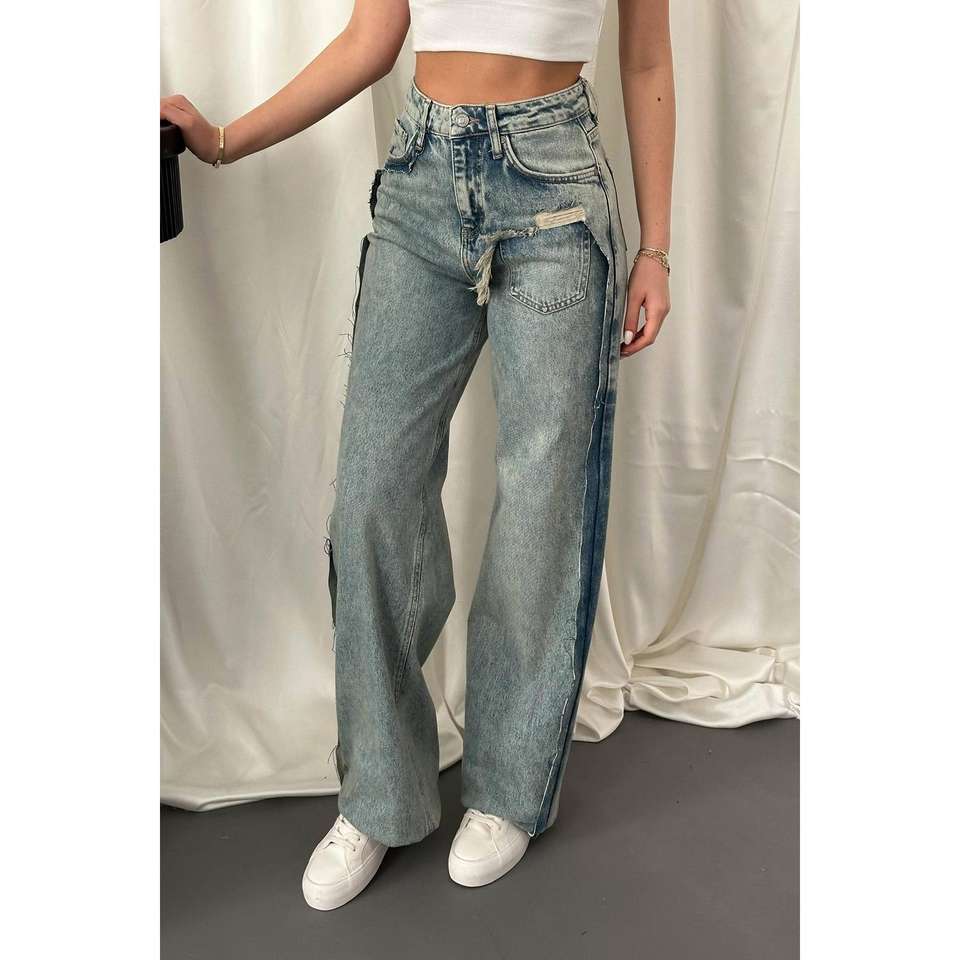 Jeans pour femmes à fente latérale effet délavé, produit en gros