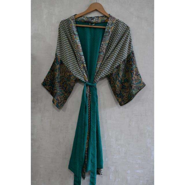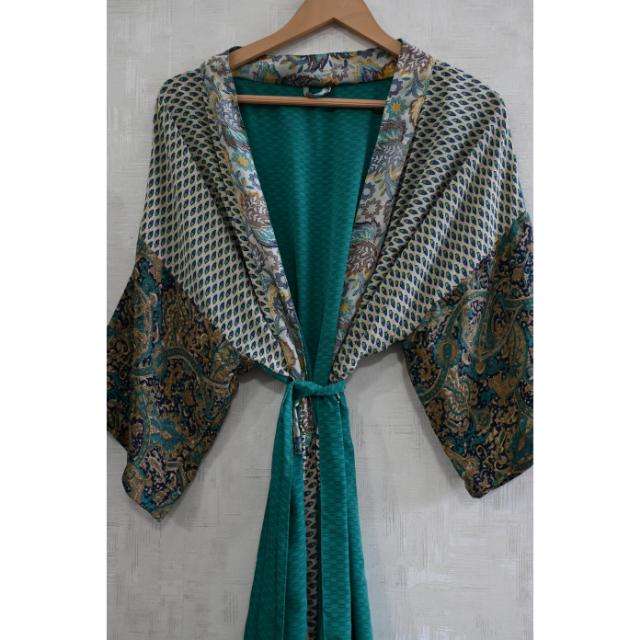 Robe kimono en soie patchwork pour femme, longue robe de nuit bohème, tenue de détente pour lune de miel
