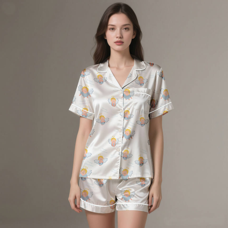 Women's Silk Satin Pajamas Set Custom Print Breathable Luxury Summer Sleepwear