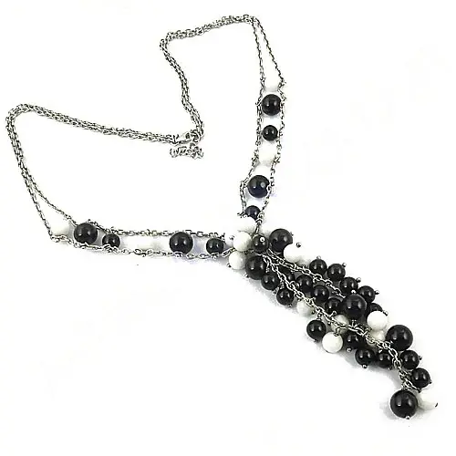 Women's Silver Black White Bead Necklace Geometric Design Fashion Jewelry Featuring Diamond Pearl Gold Religious for Parties