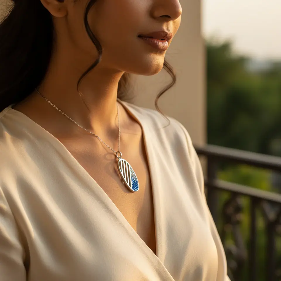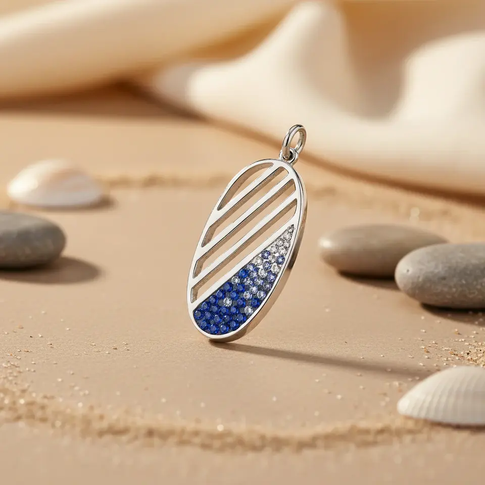 Women's Silver Crystal Pendant with Blue Gemstone Jewelry Elegant Charms Collection