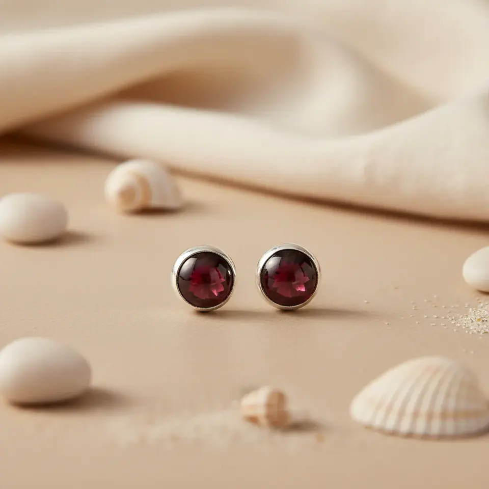 Women's Silver Garnet Stud Earrings Gemstone Trendy Drop Earrings Featuring Emerald Ruby Sapphire Diamond Amethyst GIA Certified