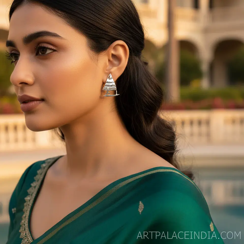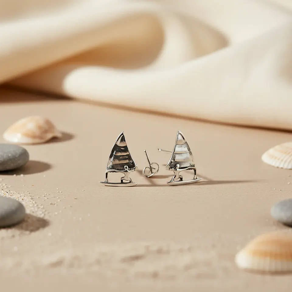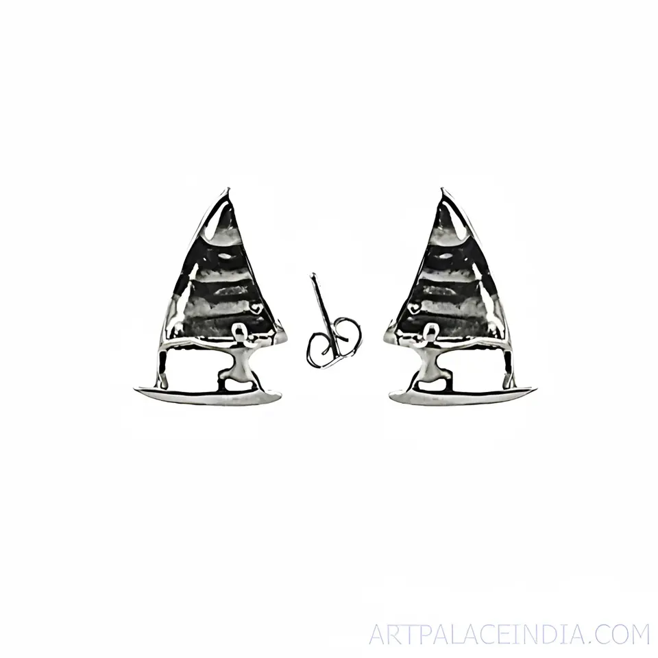Women's Silver Sailboat Stud Earrings with Bezel Setting Fashion Jewelry for Engagement Occasions