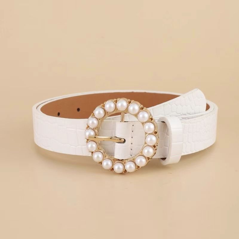 Ceinture en cuir PU élastique simple élégante pour femmes avec boucle en alliage incrusté de perles de luxe Caractéristiques extensibles pour jeans et robes