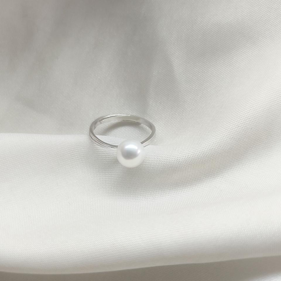 Women's Simple Fashionable 7mm Round Freshwater Pearl Ring S925 Silver with Strong Light Flawless Adjustable