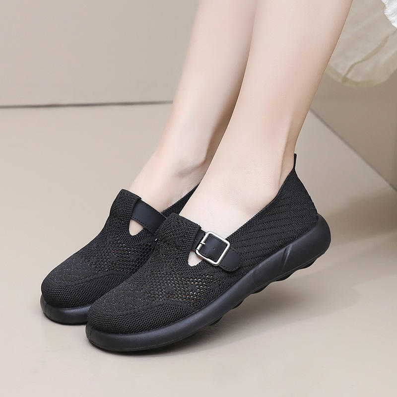 Chaussures simples pour femmes confortables volantes tissées respirantes semelle souple antidérapante marche sans lacet fermeture légère conception plate pour l'automne