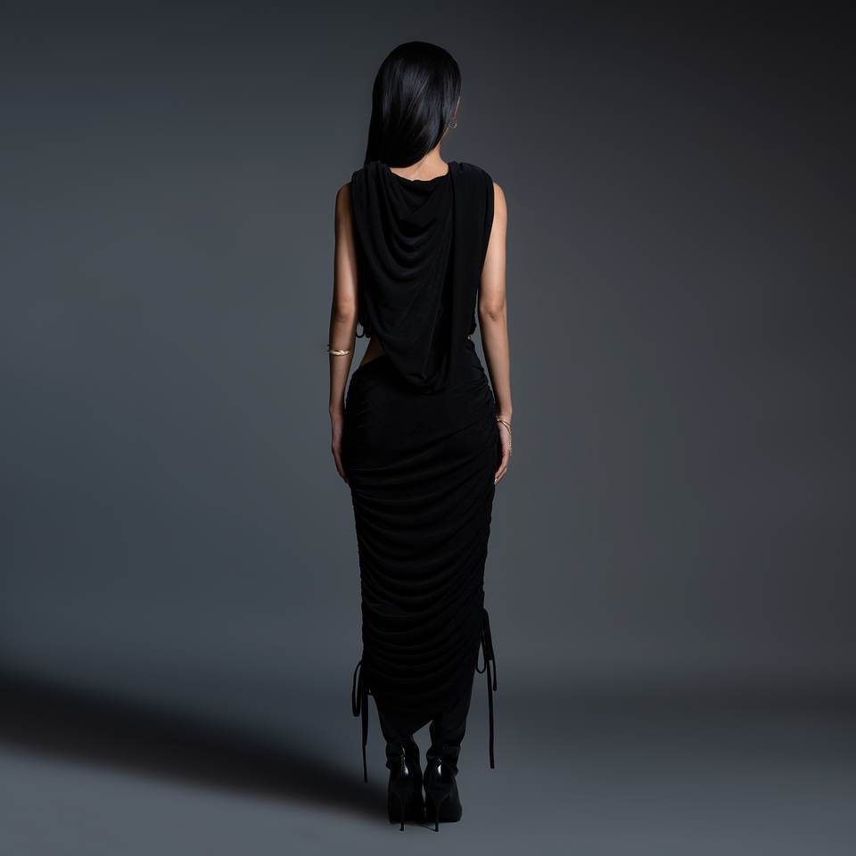 Technics:Straight-cut skirt with adjustable side drawstring ruching