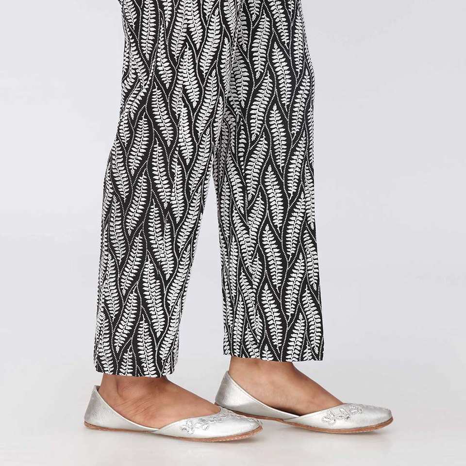 Women's Slim Fit Khaddar Trouser PW3601 Black Puff Printed Pant & Trousers